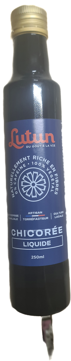La chicorée liquide Lutun est un produit naturel élaboré à partir de racine de chicorée torréfiée . Elle ne contient pas de caféine et possède des vertus digestives connue depuis l'Antiquité . Ajouter une à plusieurs cuillères à café de chicorée liquide, dans de l'eau ou du lait , chaud ou froid vous obtiendrez une exellente boisson pour le petit déjeuner ou tout autre moment de la journée .